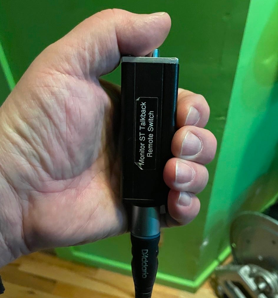 Weirdly it took multiple tries to find an actual switch that survived the vigorous plunging these producers put the poor device through. Some will hold it and talk into it even though it’s just a switch and the mic is in the rack-mounted Monitor ST unit.